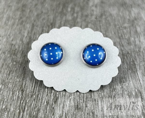 Diese fröhlichen Ohrstecker bringen ein Stück Sommerlaune in deinen Alltag! Das kräftige Blau mit kleinen weißen Punkten erinnert an klare Himmel, frische Brisen und verspielte Leichtigkeit – perfekt für alle, die es farbenfroh und charmant lieben.