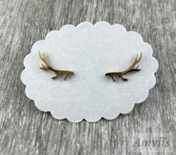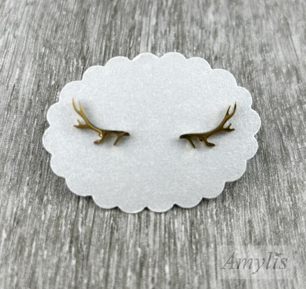 Mit viel Liebe gefertigt – jedes Paar goldfarbener Geweih Ohrstecker ist ein kleines Stück Winterzauber für dich. Handmade mit Herz von Amylis.