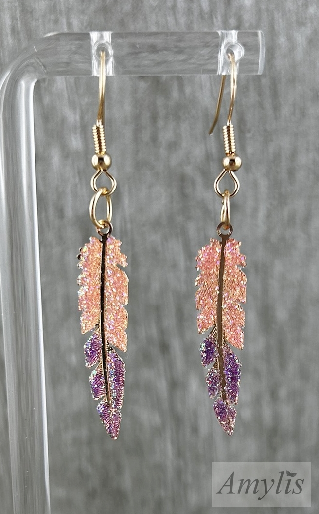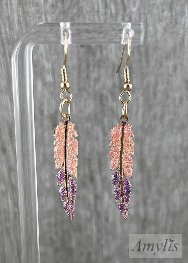 Glitzer Feder Ohrhänger Pfirsich Violett