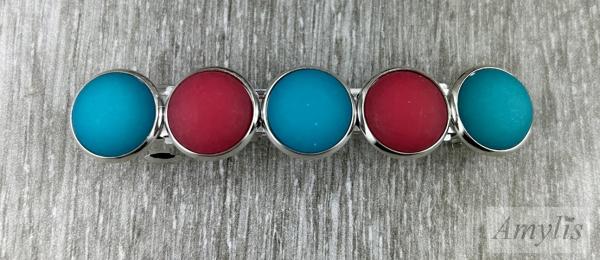 Mut zur Farbe – die handgefertigte Haarspange „Color Harmony“ bringt kraftvolle Farbtöne in dein Styling. Die Kombination aus leuchtendem Türkis und intensivem Magenta verleiht jedem Look Energie und Ausdruck. Ein moderner Farbakzent für alle, die Individualität lieben und mit ihrem Stil strahlen möchten.