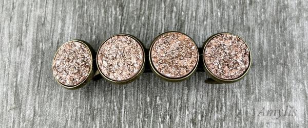 Zeitloser Glanz in edlem Vintage-Look: Die handgefertigte Haarspange „Golden Dust“ aus der Elegant Glow-Kollektion verbindet warm schimmerndes Roségold mit antik-bronzenem Metall. Das feine Glitzern erinnert an zarten Sternenstaub und verleiht deinem Styling eine elegante, feminine Note – perfekt für besondere Anlässe oder um deinem Alltag einen Hauch von Luxus zu schenken.