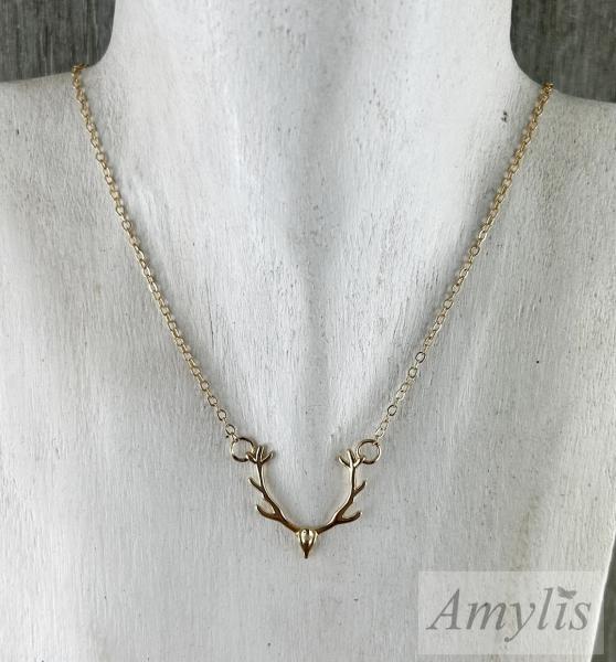 Halskette mit Hirschgeweih-Anhänger in Gold | Natürlich & handmade von Amylis