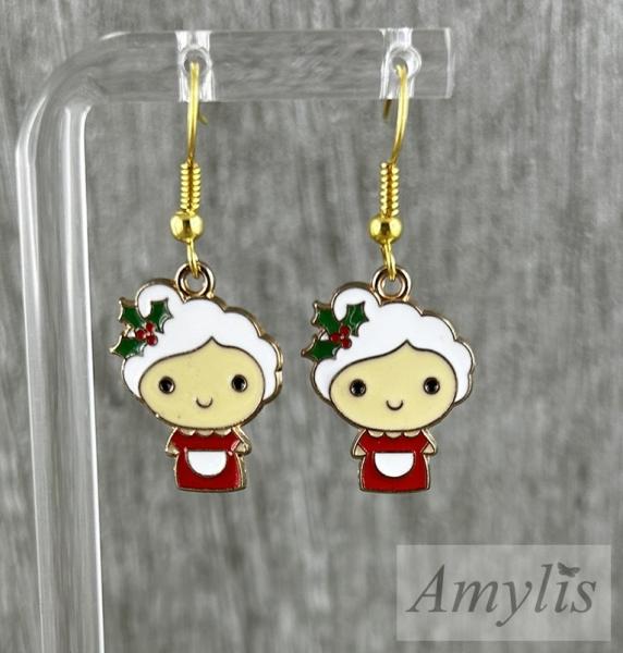 Einfach zuckersüß – diese kleinen Mrs. Claus Ohrhänger bringen Weihnachtsfreude und einen Hauch Nostalgie in dein Outfit. Mit ihrem freundlichen Gesicht und dem kleinen Stechpalmenzweig im Haar sind sie ein echtes Highlight für alle, die den Zauber der Adventszeit lieben.