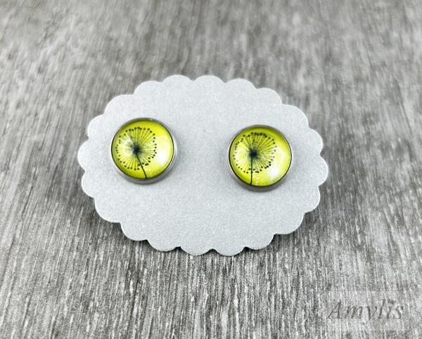 • handgefertigte Ohrstecker mit glänzendem Glas-Cabochon