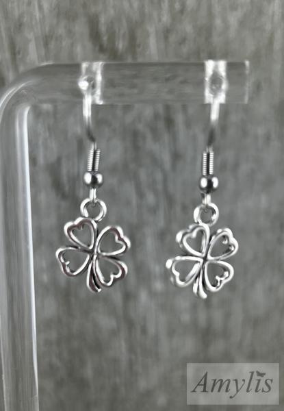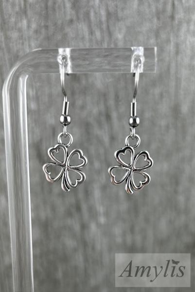 Glücksbringer Ohrringe – Silberfarbene Kleeblatt-Ohrringe mit Herzdesign | Handgefertigter Schmuck von Amylis