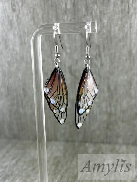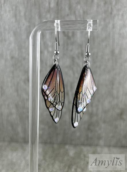 Schmetterlingsflügel Ohrringe – Zarte Flügel in changierendem Rosé mit Glitzereffekt | Handgefertigter Schmuck von Amylis