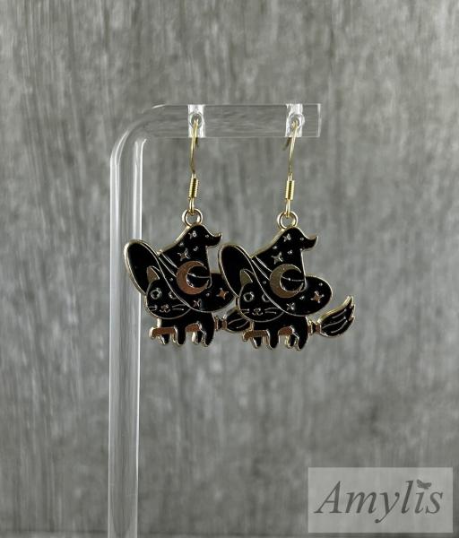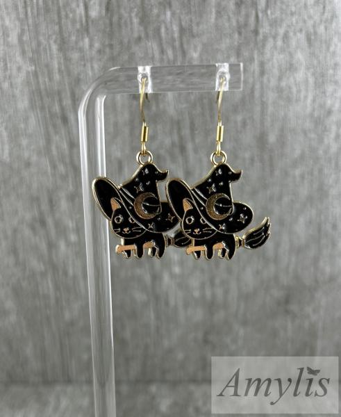 Amylis – Schwarze Hexenkatze Ohrringe mit Goldakzenten