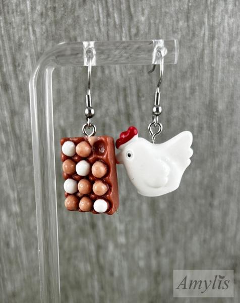 Frühstücksfreude Ohrringe – Huhn & Eierpalette als süßes Paar | Handgemachter Schmuck von Amylis