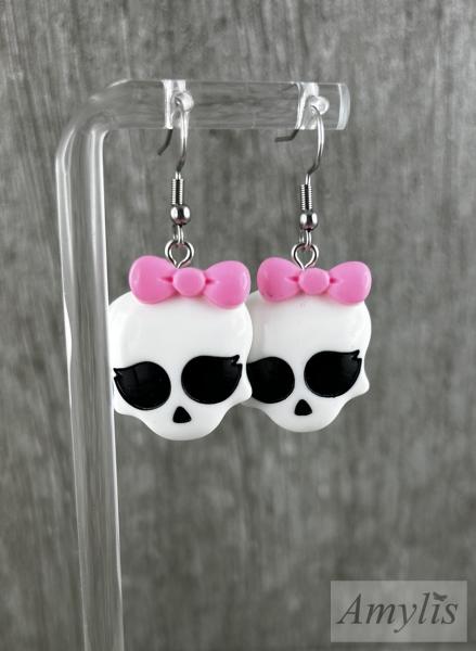 Schädel Ohrringe mit rosa Schleife | Handgefertigter Schmuck von Amylis