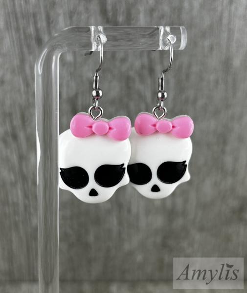 Preview: Schädel Ohrringe mit rosa Schleife | Handgefertigter Schmuck von Amylis