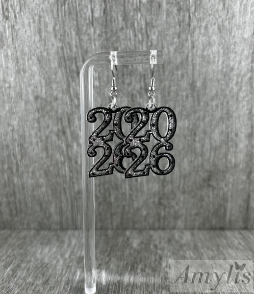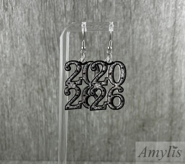 2026 Ohrringe – Glitzernde Jahreszahl in Schwarz & Silber | Handgefertigter Schmuck von Amylis