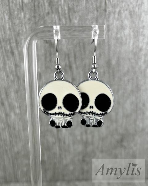 Totenkopf-Ohrhänger | Schwarz-Weiß Skull Ohrringe | Handmade von Amylis